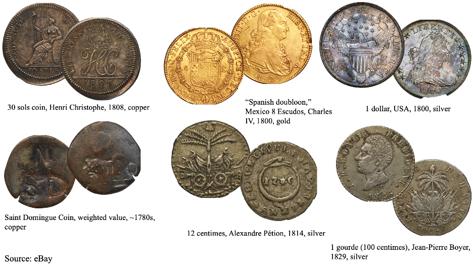 [7] Robert Lacombe, “Histoire monétaire de Saint Domingue et de la République d’Haïti, des origins à 1874,” Revue d’histoire des colonies 43, no. 152-153 (1956), 322.